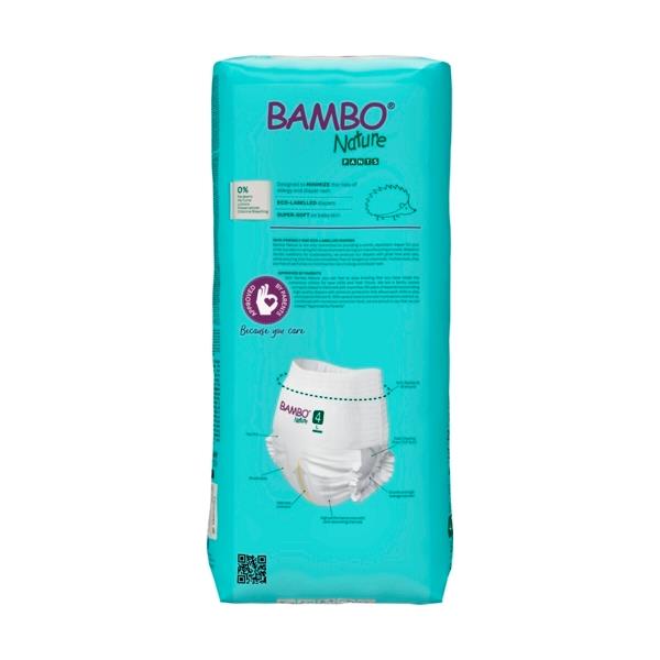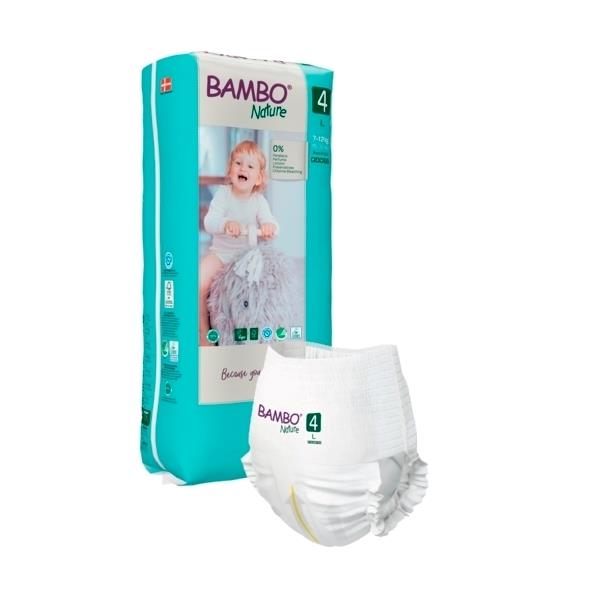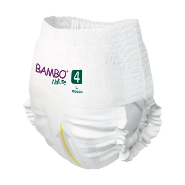 Bambo Nature Nature Pants are soft, comfortable, and keep even the most sensitive skin dry. Easy for little hands to pull up and down and ideal for potty training. The pants have a perfect body fit, which enhances the child’s freedom of movement. Designed with a super-absorbent core including latest channel technology that leads moisture away from the child’s skin and holds up to multiple wettings — even overnight.