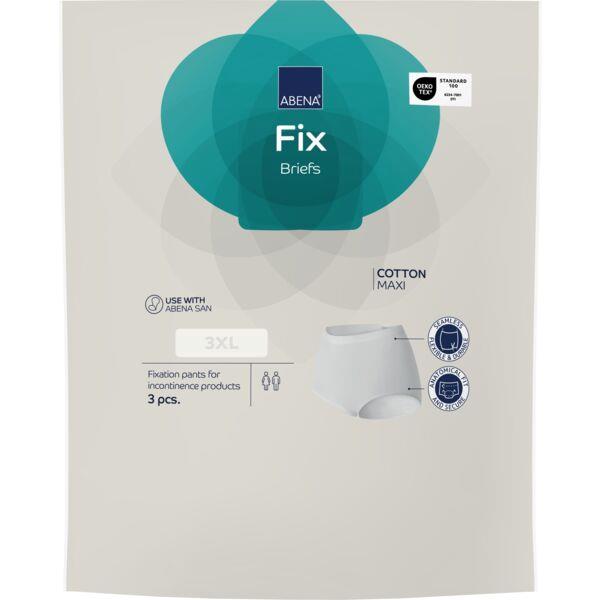 ABENA Fix Briefs Cotton Maxi are elastic and breathable fixation pants without legs, mainly made of cotton material. ABENA Fix Briefs Cotton, Maxi is to be worn as part of the 2 piece absorbent incontinence solution, for fixation of an incontinence pad. Fixation pants are wider at the crotch area and more elastic than normal underwear.