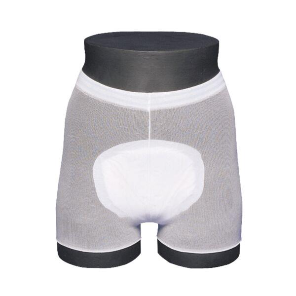 Abri-Fix Pants is to be worn as part of the 2 piece absorbent incontinence solution, for fixation of an incontinence pad. Fixation pants are wider at the crotch area and more elastic than normal underwear.